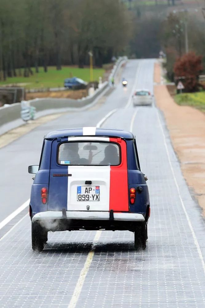 該太陽能道路的出現讓電動汽車的充電方式出現全新想象:邊跑邊充電。