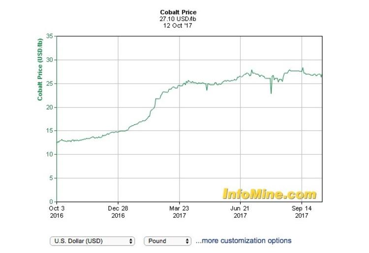 鈷金屬的價格在過去兩年增幅超過三倍。單單在 2017 年,鈷價就飆漲 80% 以上。
