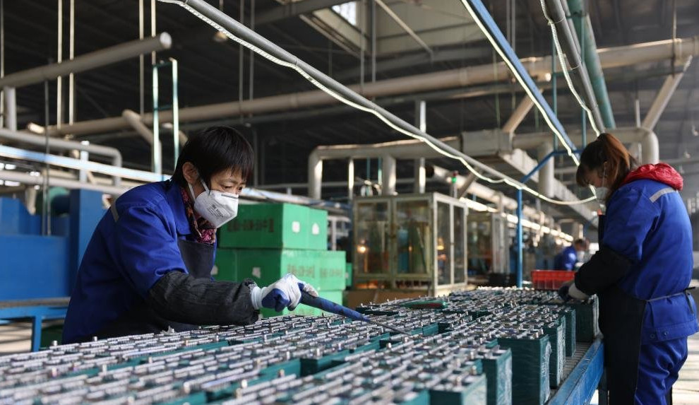 在河北超威電源有限公司,工人們正在檢測產(chǎn)品。新華社記者張瑋華 攝