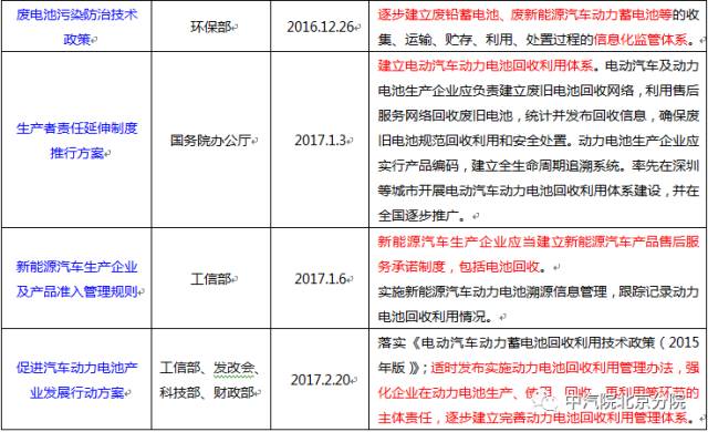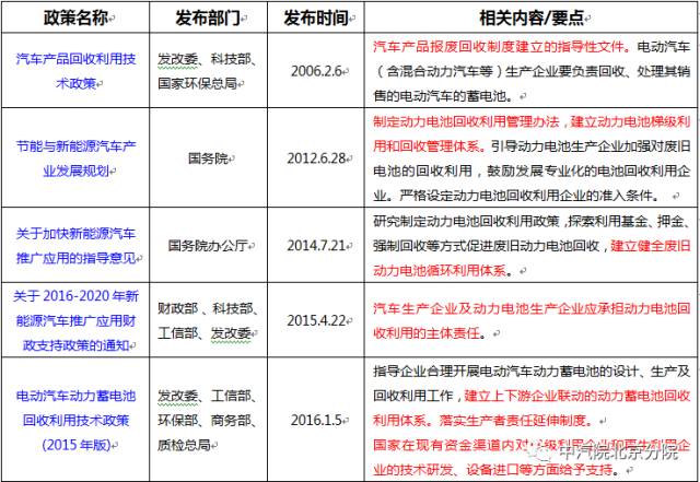 從上表可以看出,車用動力電池回收政策逐步完善,已經(jīng)明確了動力電池回收責(zé)任主體,并在多項政策中強調(diào)了“生產(chǎn)者責(zé)任延伸制度”,但在落實方面仍存在一定困難。
